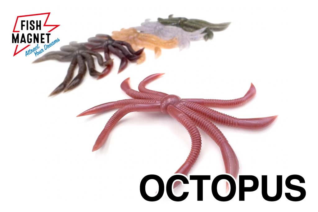 元祖オクトパスは遡ること15年以上前、かつてストレートワームを4本房掛けにして使用していたオクトパス。今回、マガテールをベースにその繊細さと強波動を融合した異次元のアクションをワーム単体で再現しました。一体化になり煩雑だったセッティングを不要となりオリジナル以上の水押しの強さにより集魚力も格段に向上しました。